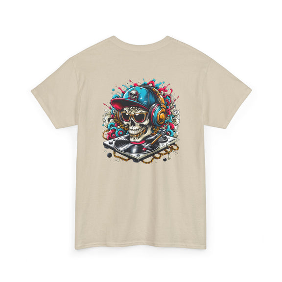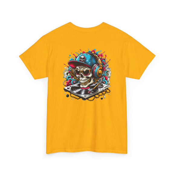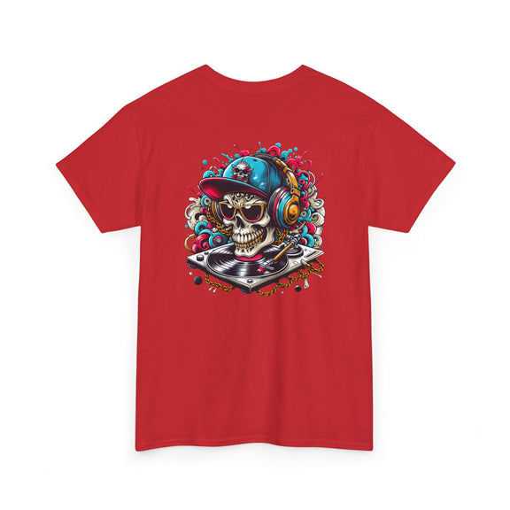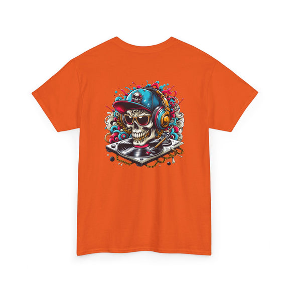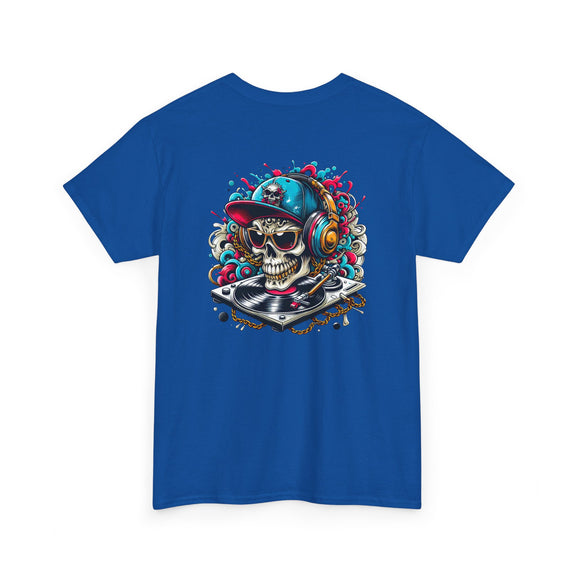 Get your groove on with this DJ Skull Graphic T-Shirt featuring a skull wearing headphones and working the turntable. Perfect for music lovers and party-goers, this tee exudes a cool and edgy vibe, making it ideal for casual outings or music events. Celebrate Halloween, music festivals, or any other occasion with this unique design.