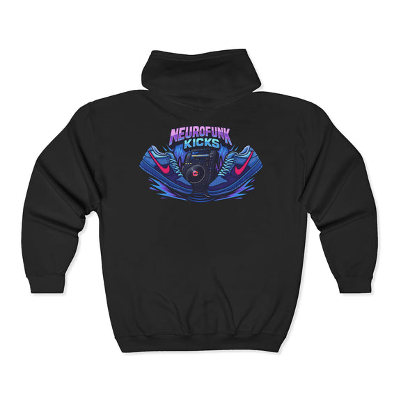 Stay warm and stylish with this heavy blend full zip hoodie featuring the Neurofunk Kicks Company logo. Perfect for music lovers and those who appreciate unique designs. Ideal for casual wear or lounging at home. Great for gifting during birthdays, holidays, and music-related events.